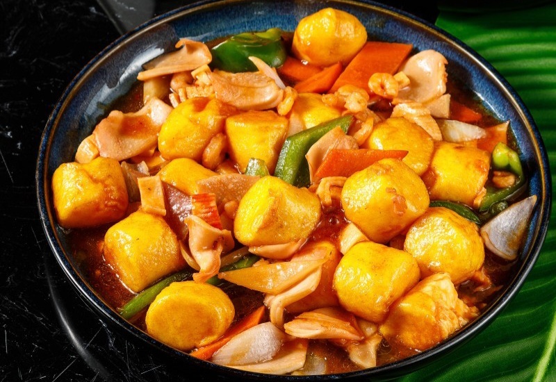 Кета с овощами в кисло - сладком соусе